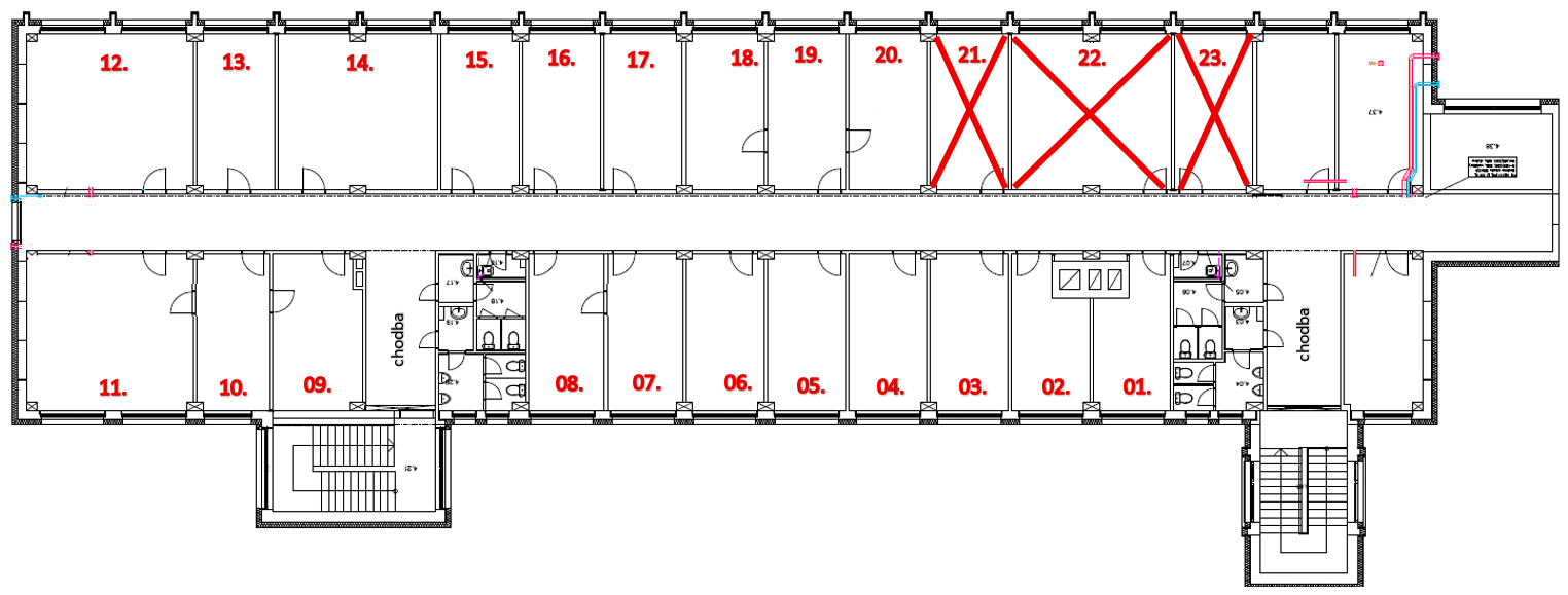 30 €/m2/rok bez DPH (kancelária č. 09 - 16,40 m2, kancelária č. 10 - 16,49 m2, kancelária č. 11 - 16,49 m2)
